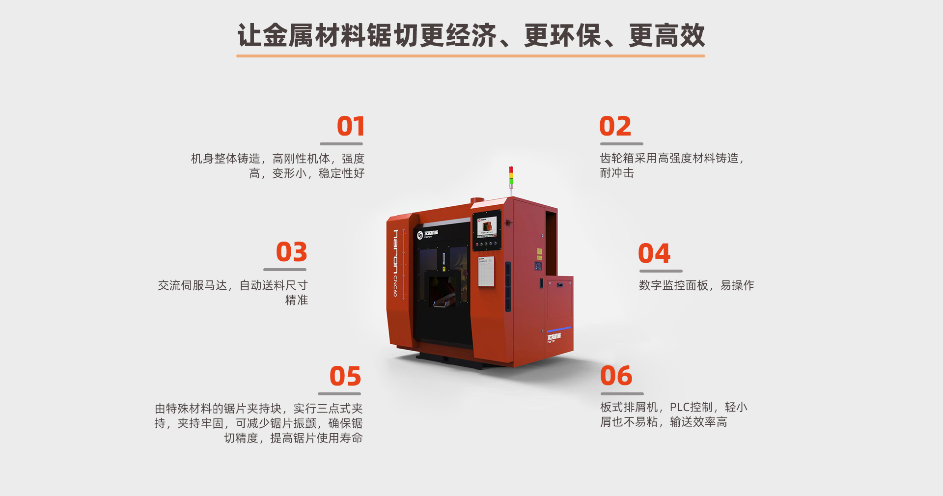 主要产品有CNC数控高速圆锯机、数控金属带锯机及其他专用锯切成套设备。凭借与众多企业合作的丰富经验和专业设计团队的优势,可为客户提供专用自动化生产线的整体解决方案,为企业与时俱进的快速发展提供技术设备的保证。